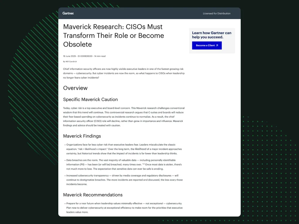 Maverick Research: CISOs Must Transform Their Role or Become Obsolete by Gartner®