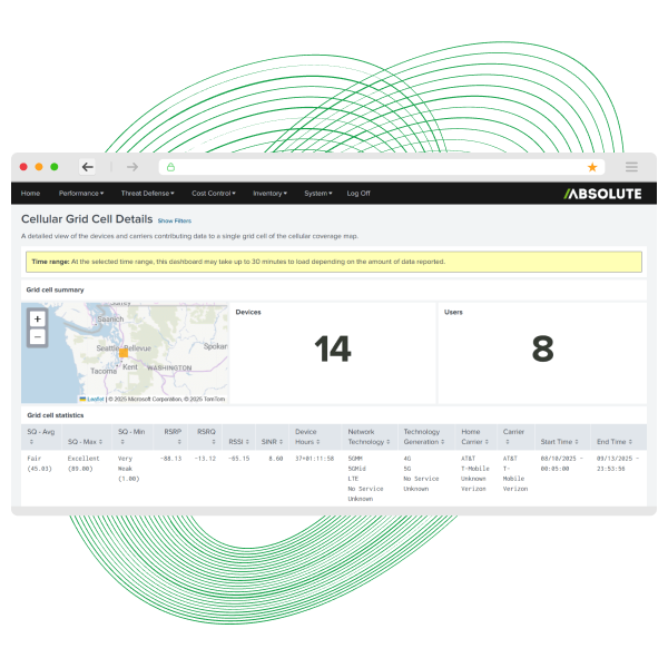 Keep your workforce productive and your critical infrastructure resilient with real‑time visibility across every device, user, app, and network. Absolute Insights for Network helps you spot anomalies fast, troubleshoot, and maintain operational continuity.