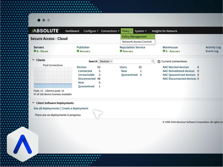 Absolute Secure Web & SaaS Access applies inline SWG and CASB controls with endpoint enforcement—so policy doesn’t disappear when users leave the corporate network.